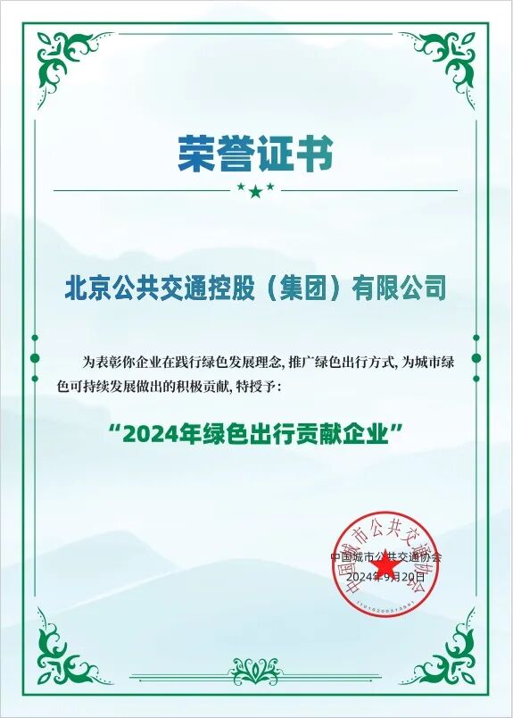 【绿色贡献】绿色出行贡献企业——北京公共交通控股(集团)有限公司