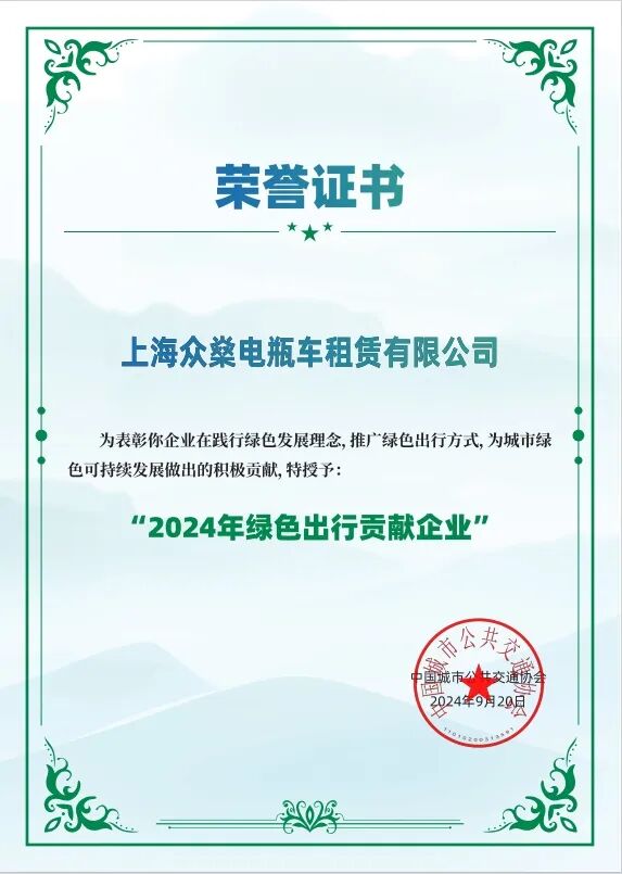 【绿色贡献】绿色出行贡献企业——上海众燊电瓶车租赁有限公司