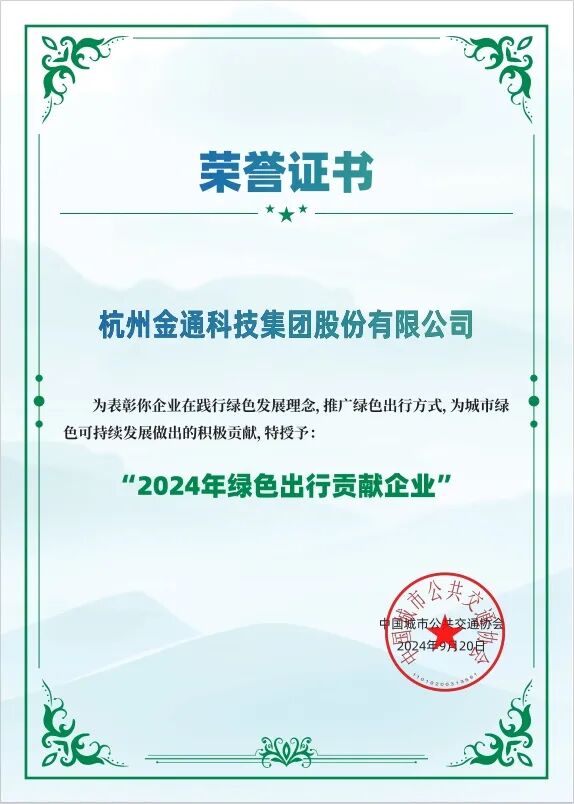 【绿色贡献】绿色出行贡献企业——杭州金通科技集团股份有限公司